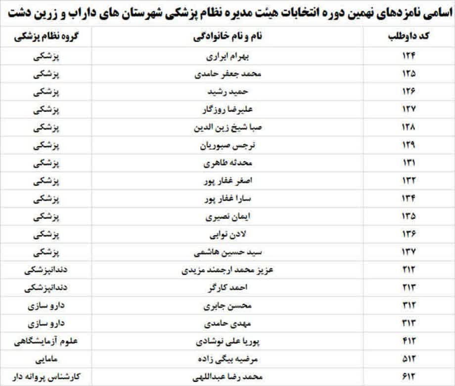 اطلاعیه هیأت اجرایی انتخابات نظام پزشکی شهرستان های داراب و زرین دشت